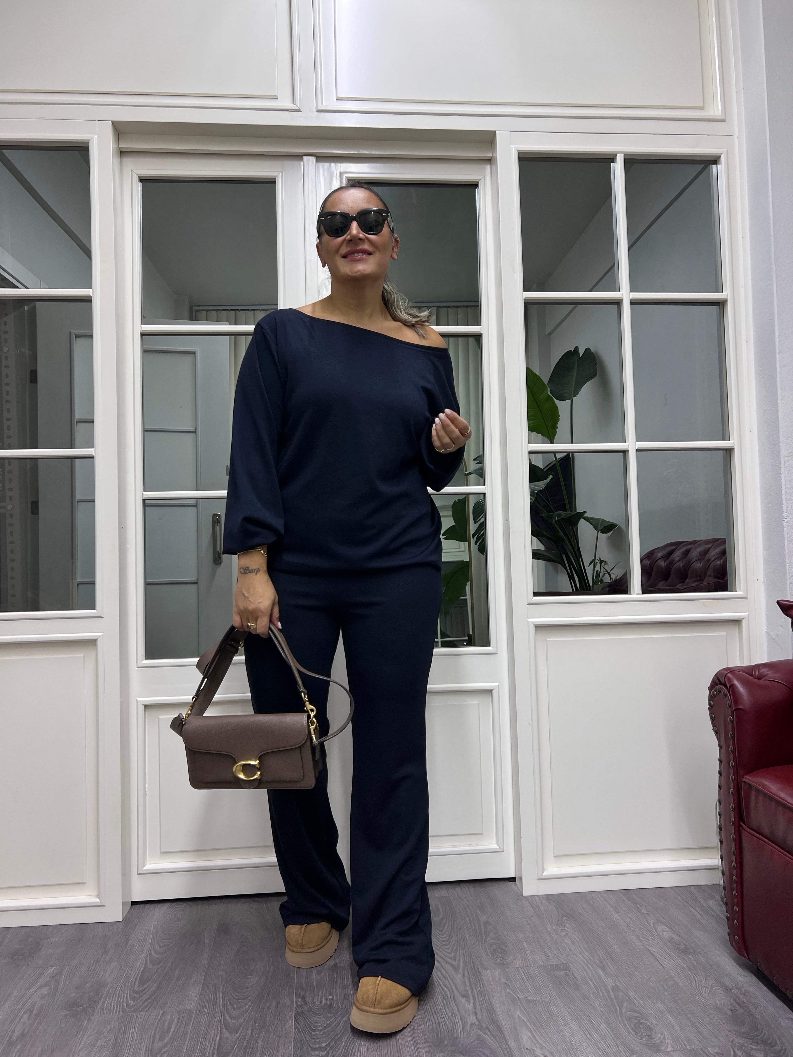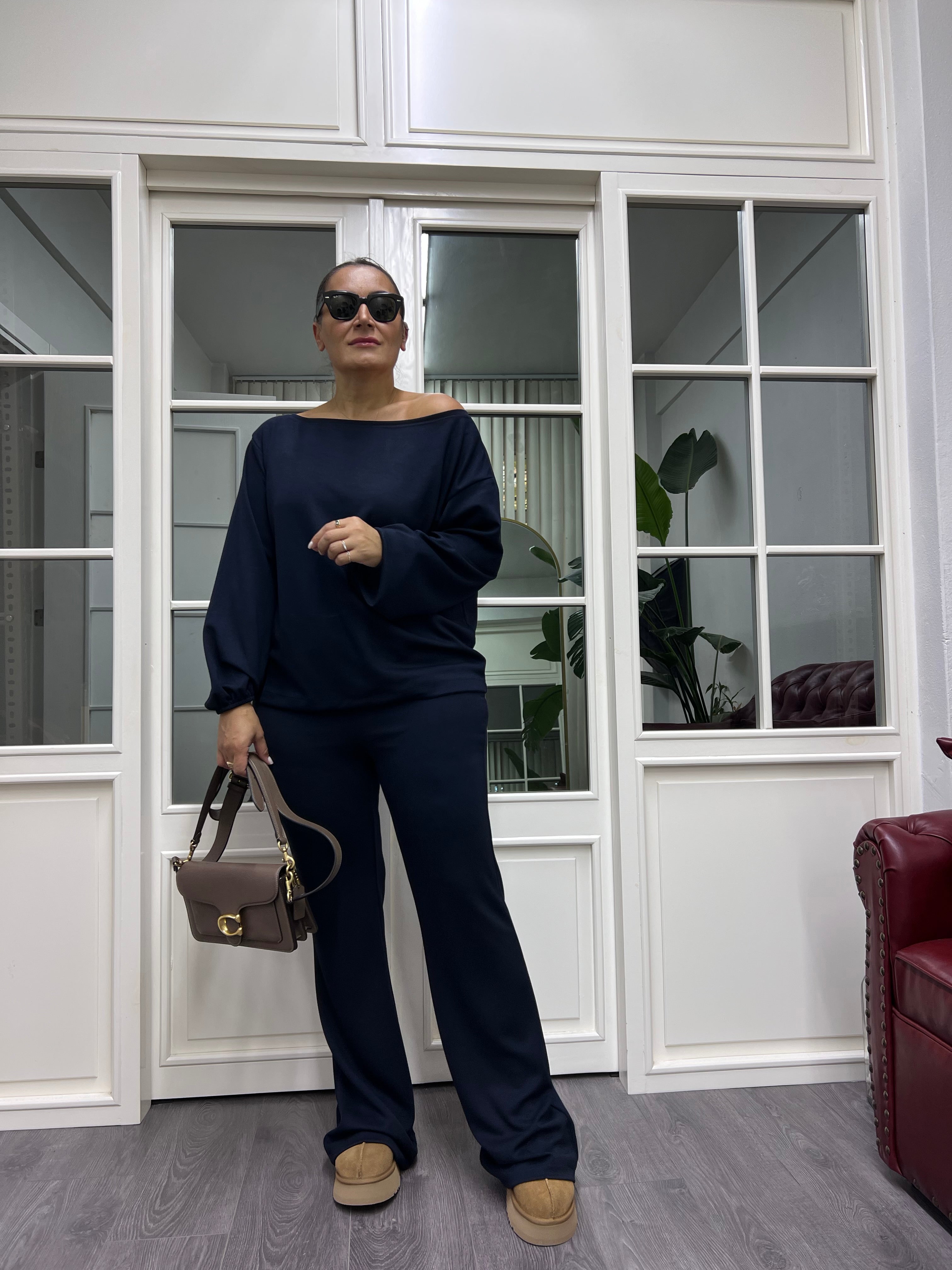 A02106 lacivert kayık yaka takım