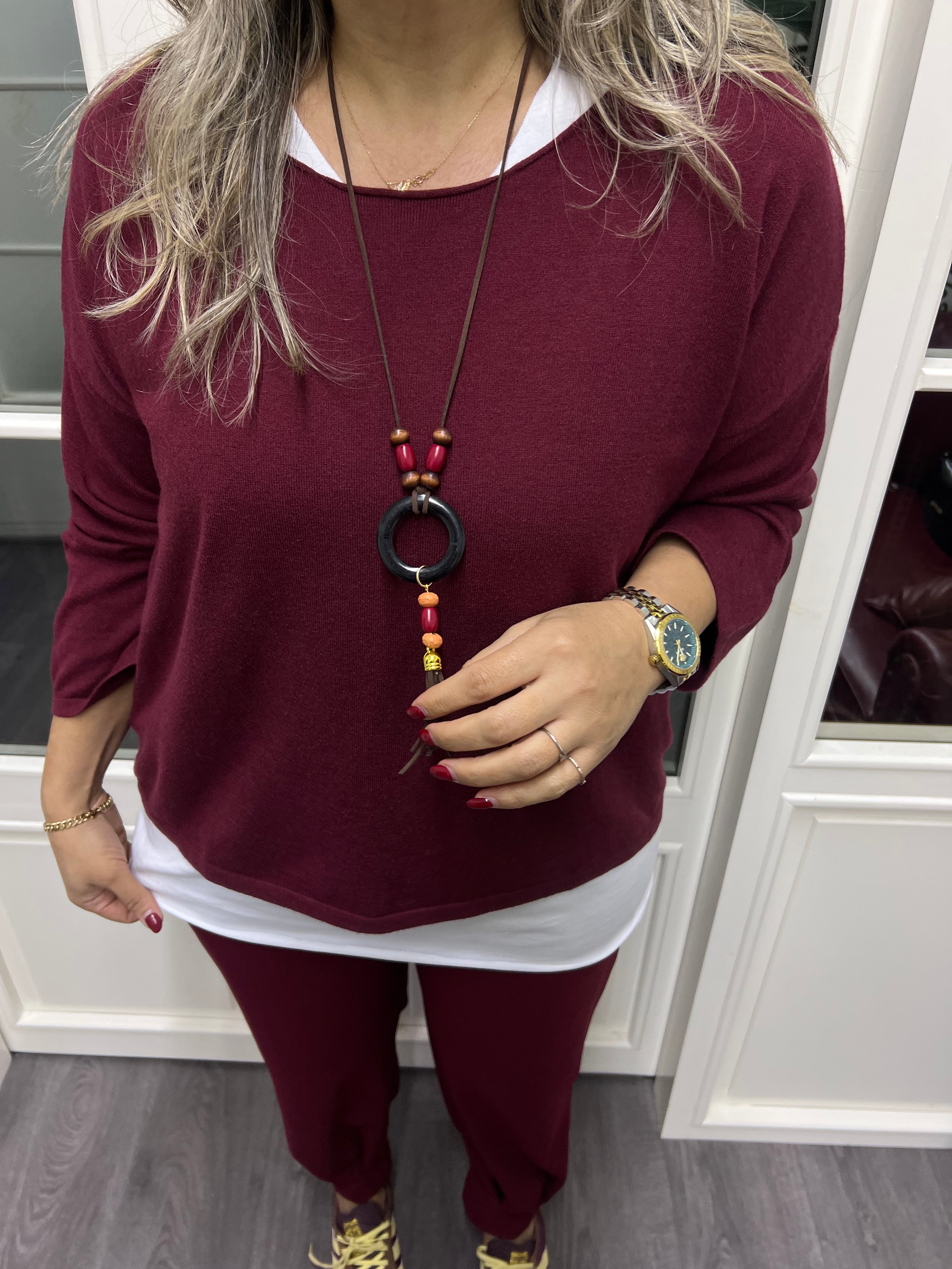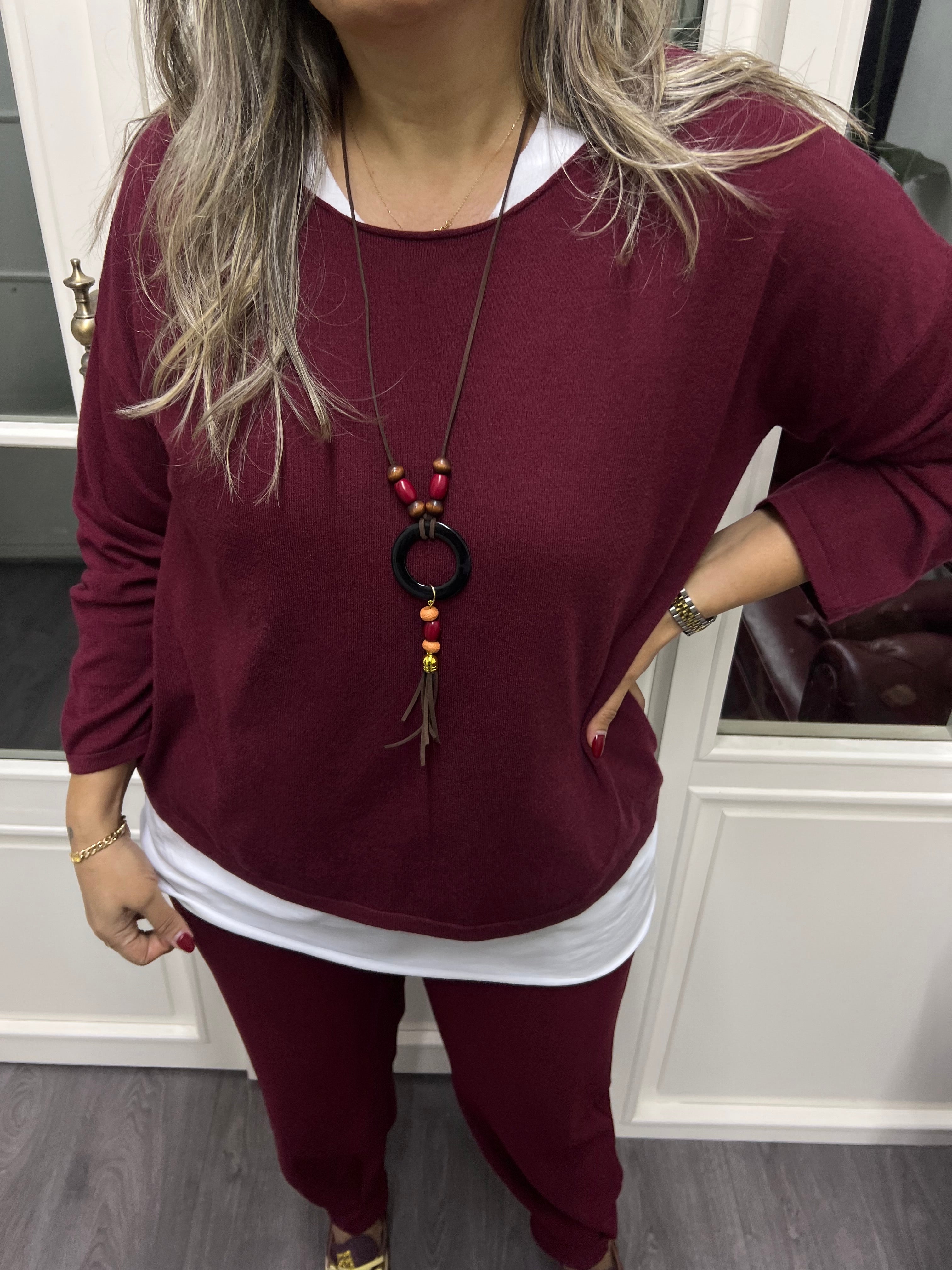 A02170 bordo standart beden triko set