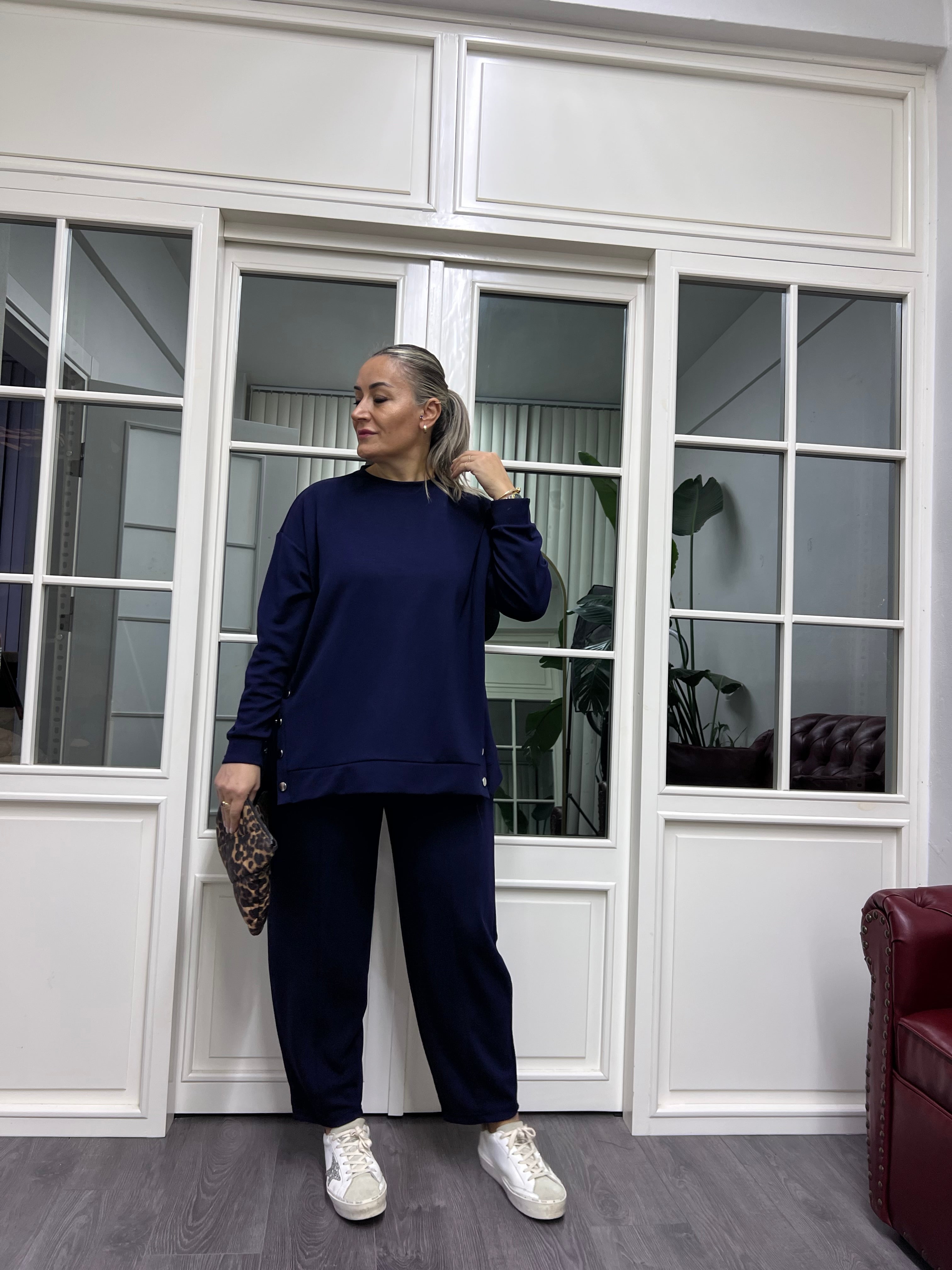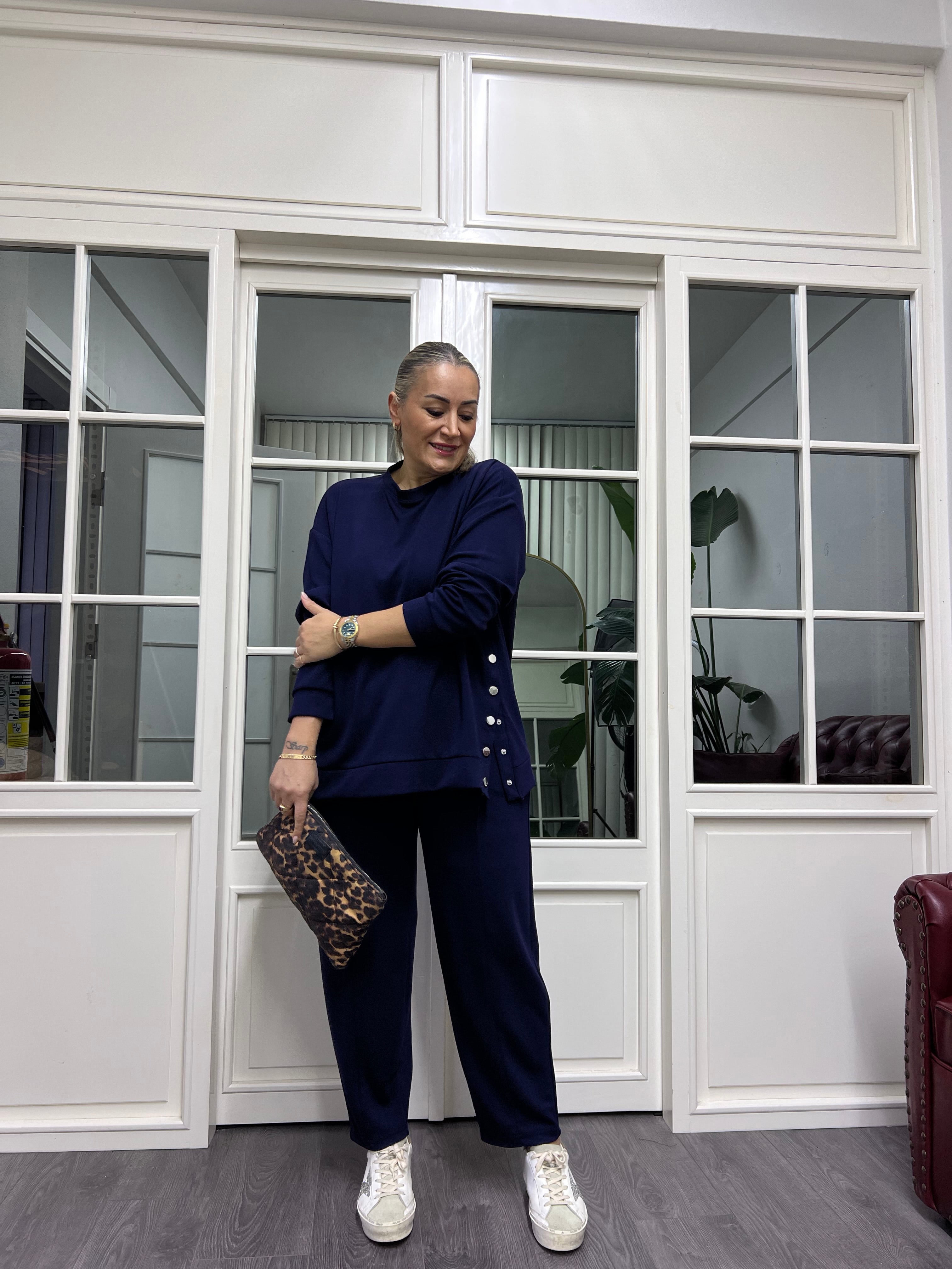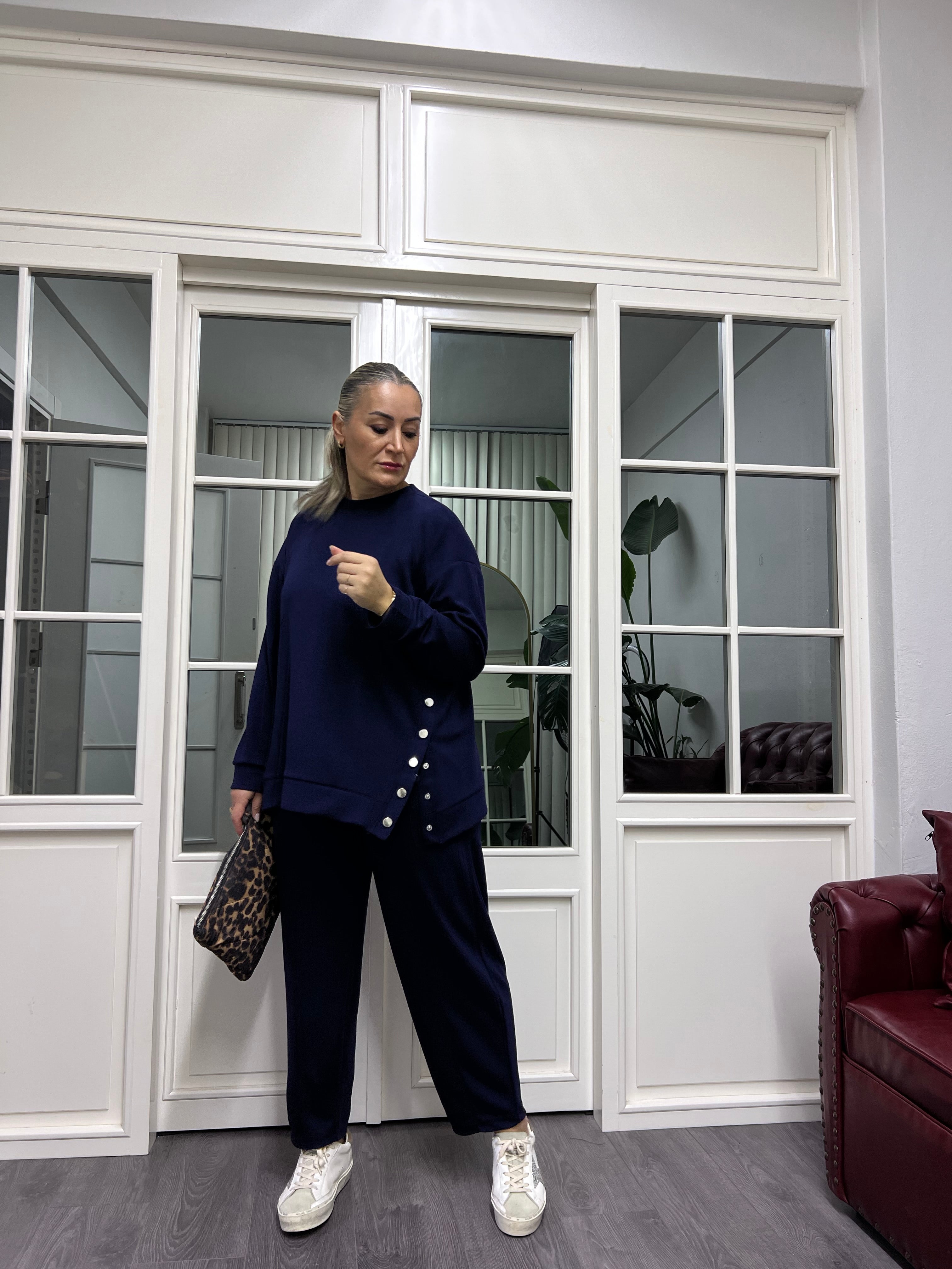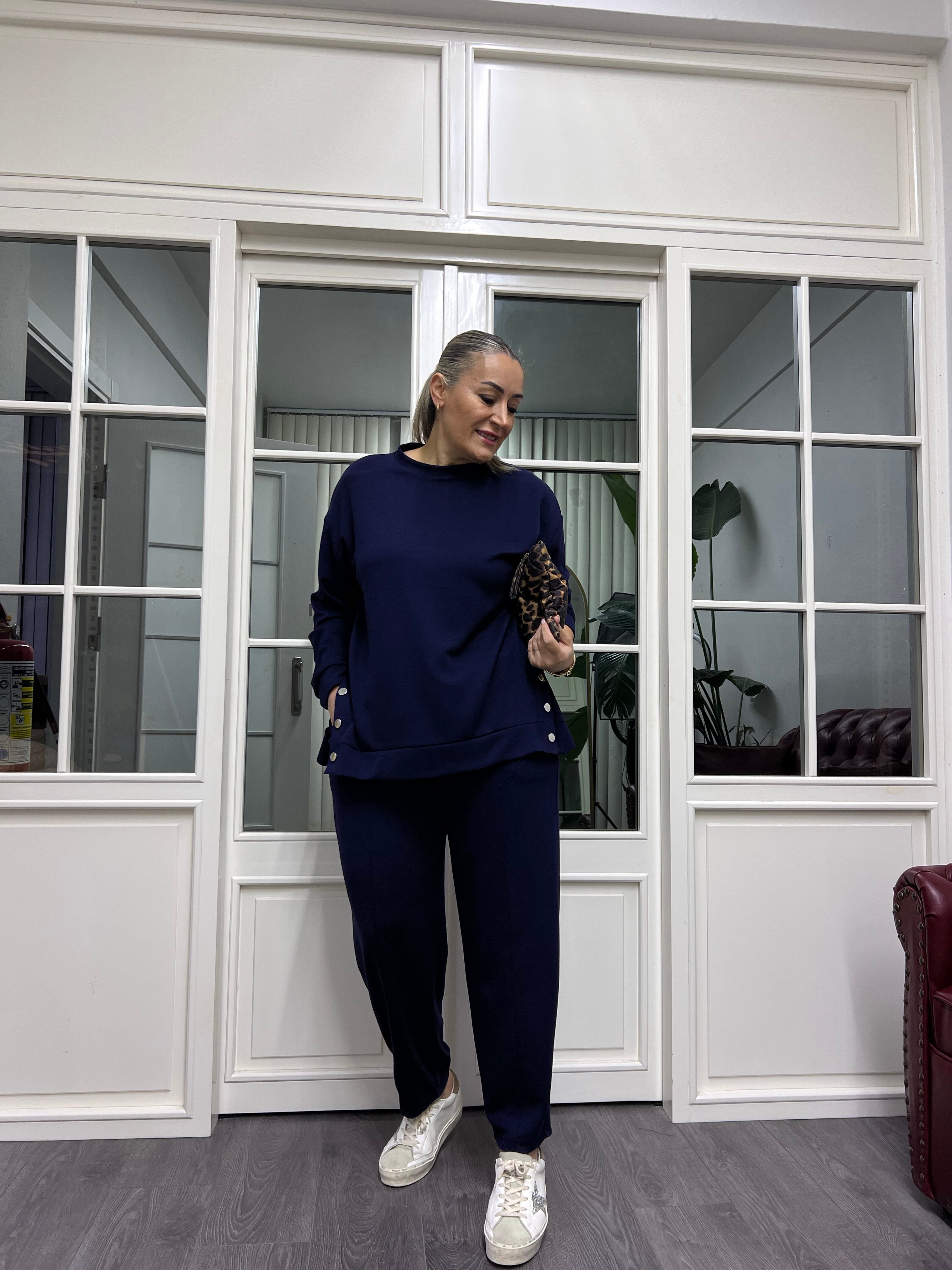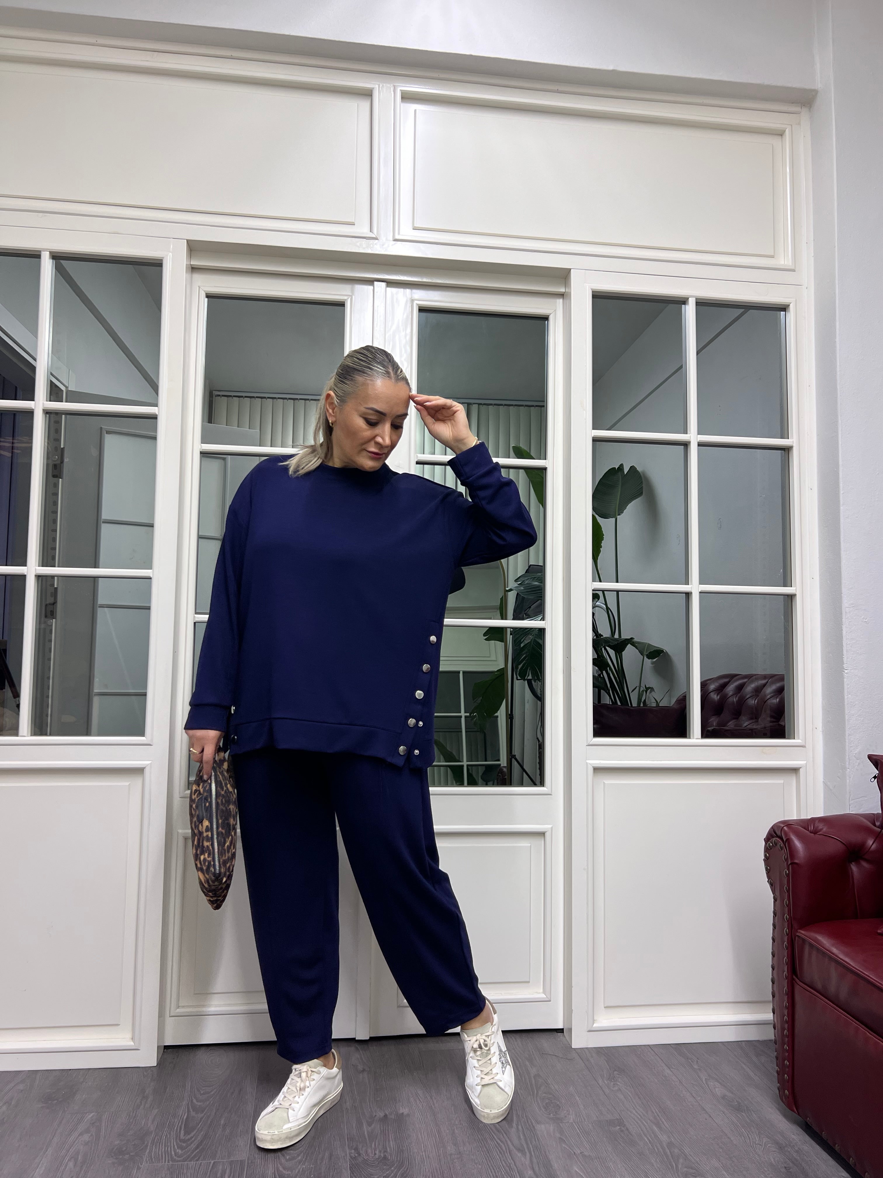 A02184 lacivert çıtçıtlı modal kumaş eşofman takımı
