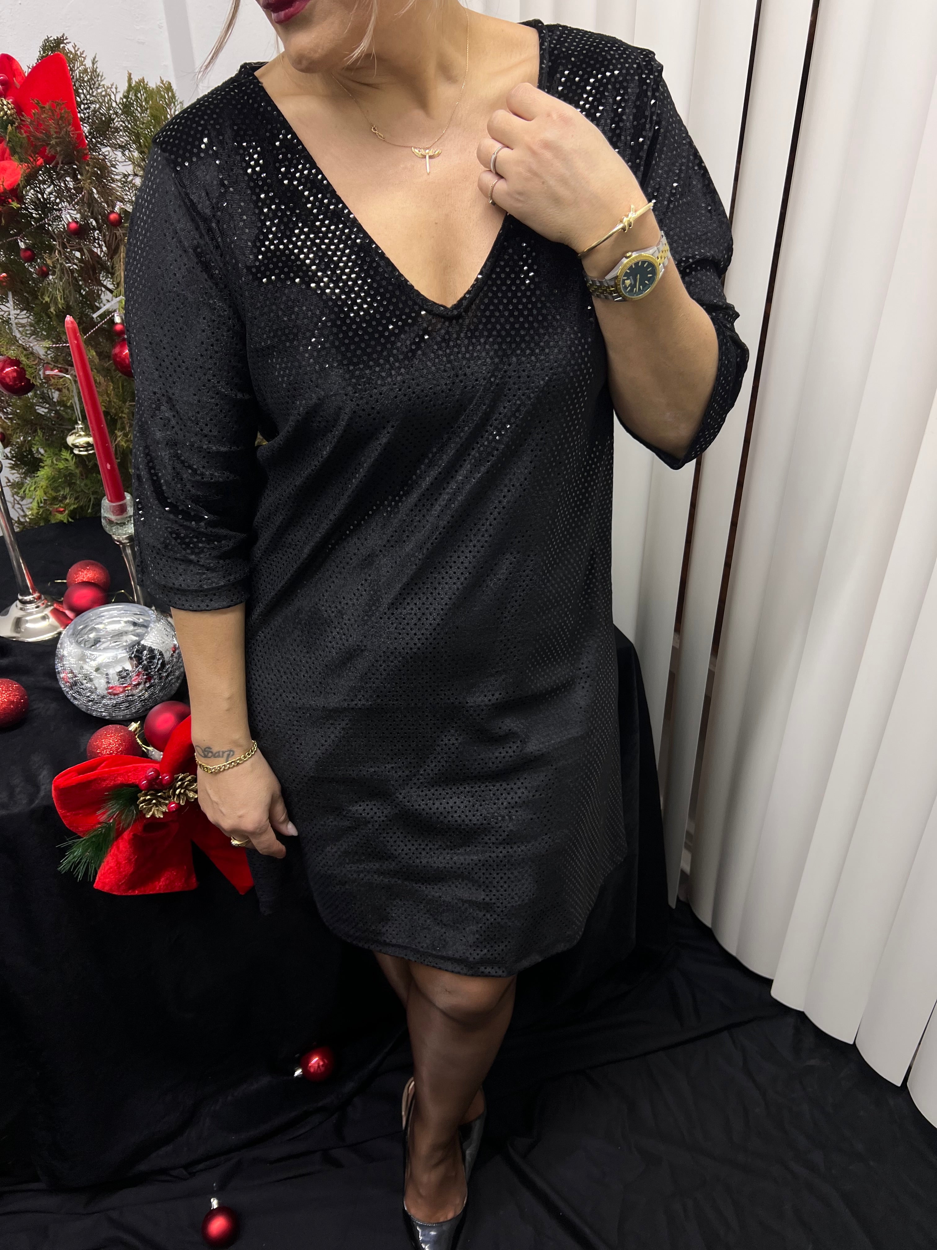 A02194 parlak kadife elbise