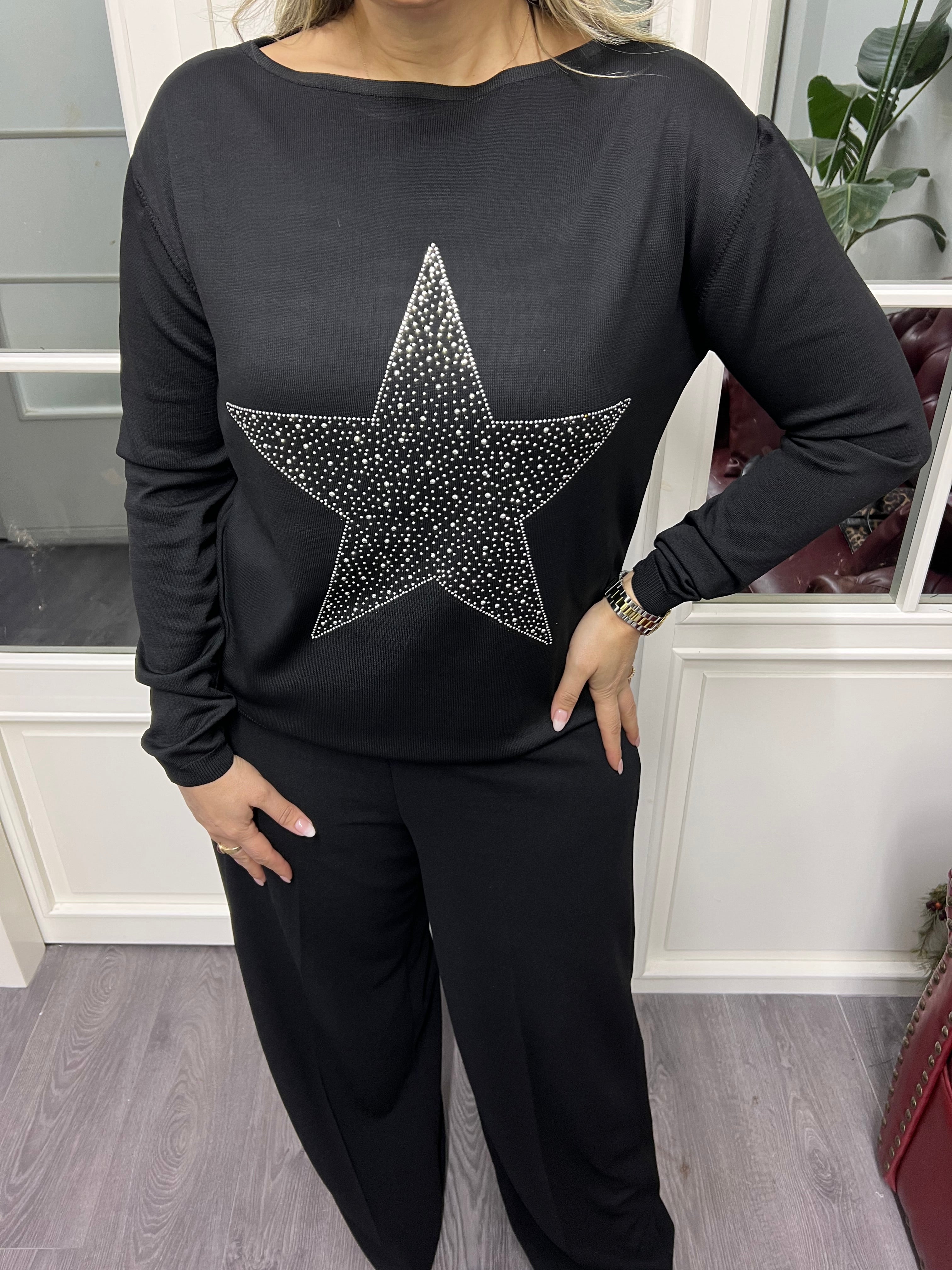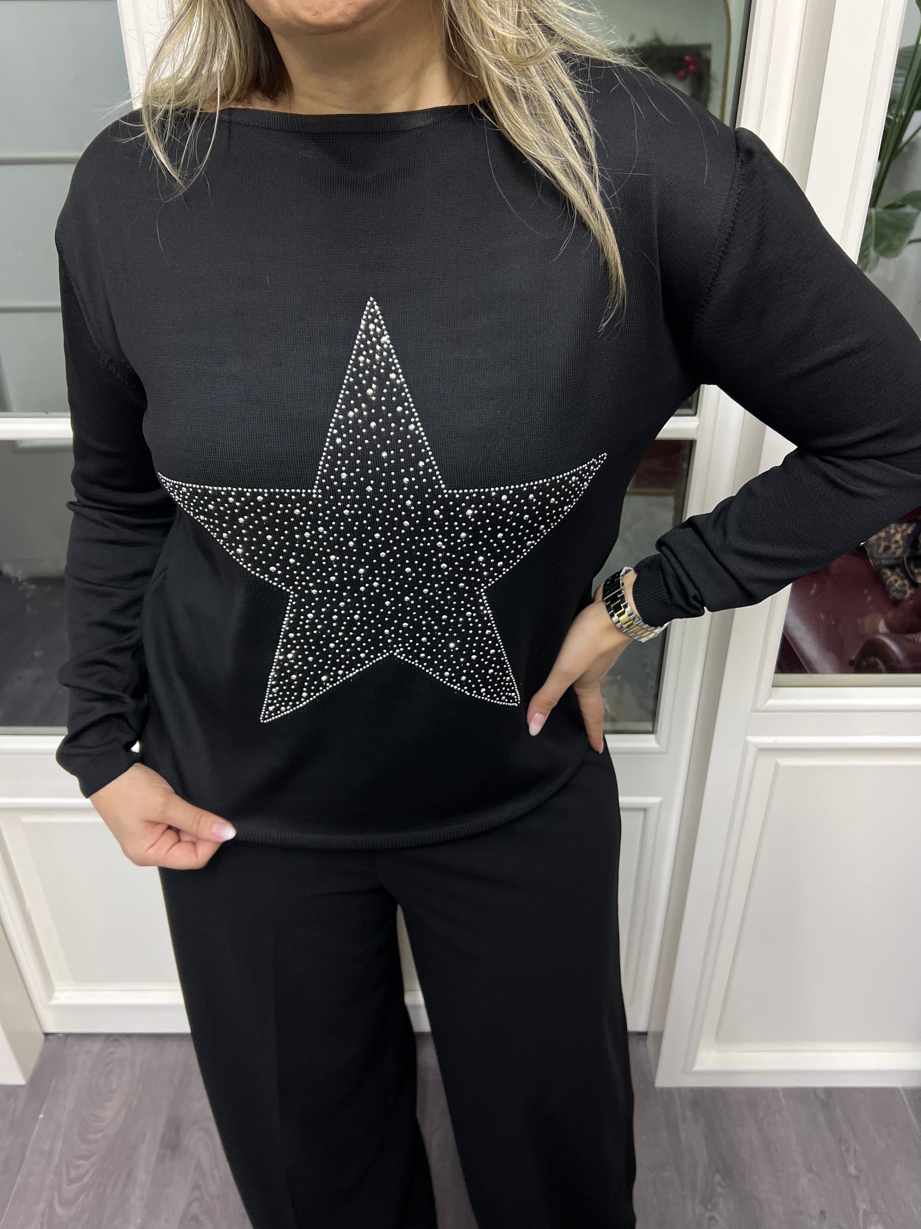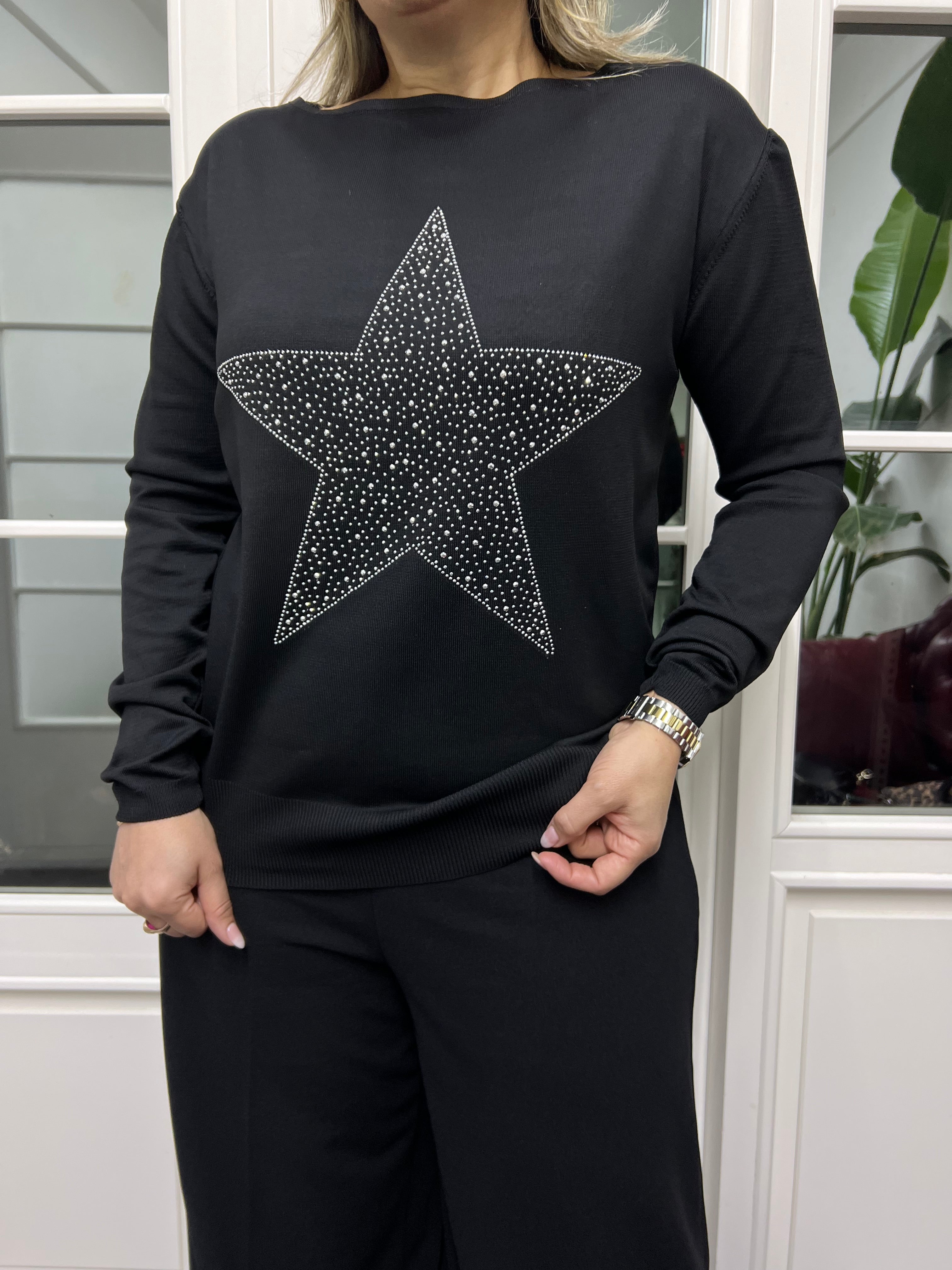 A02246 yıldız baskılı triko bluz