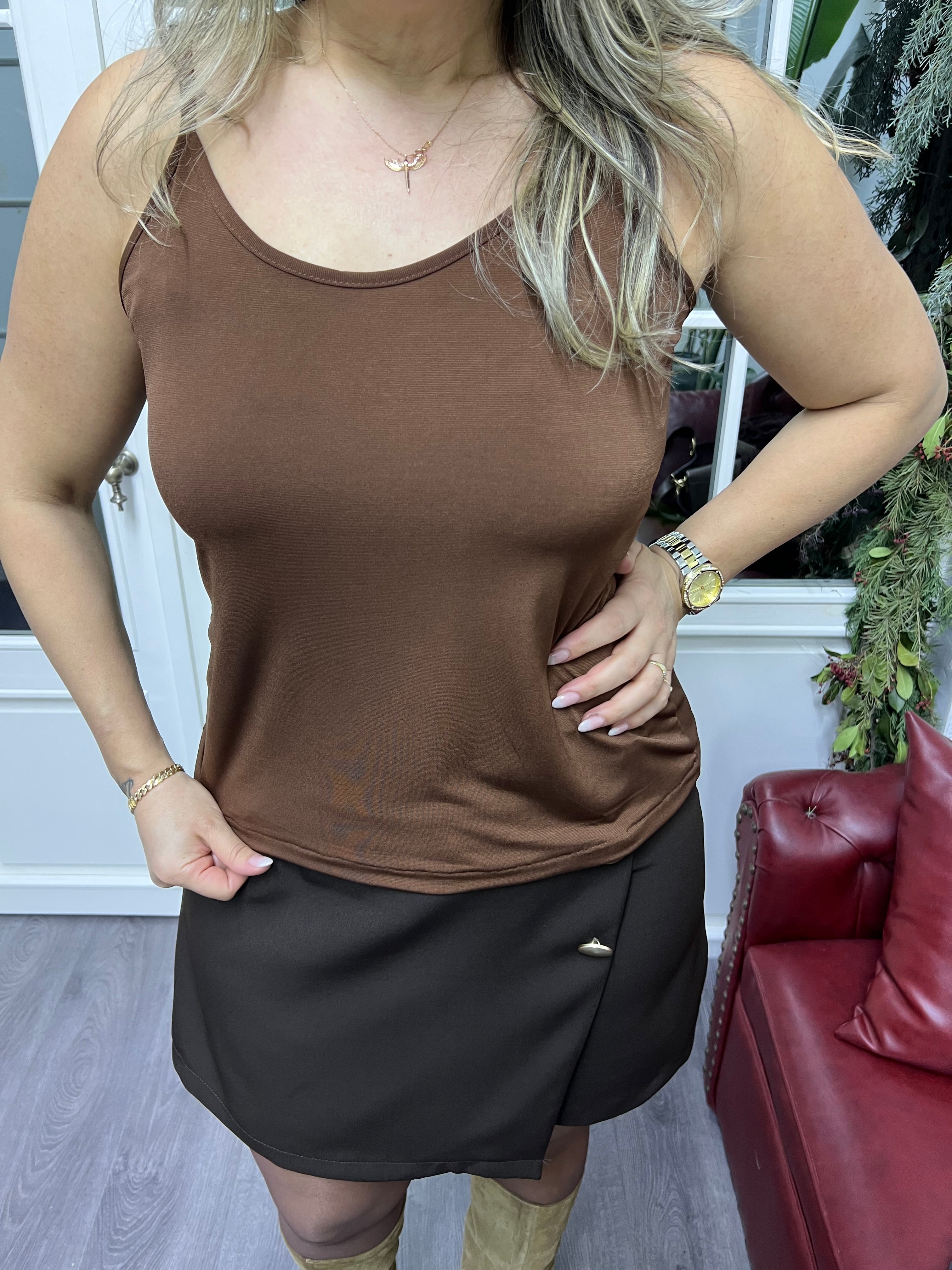 A02249 kahve askılı bluz