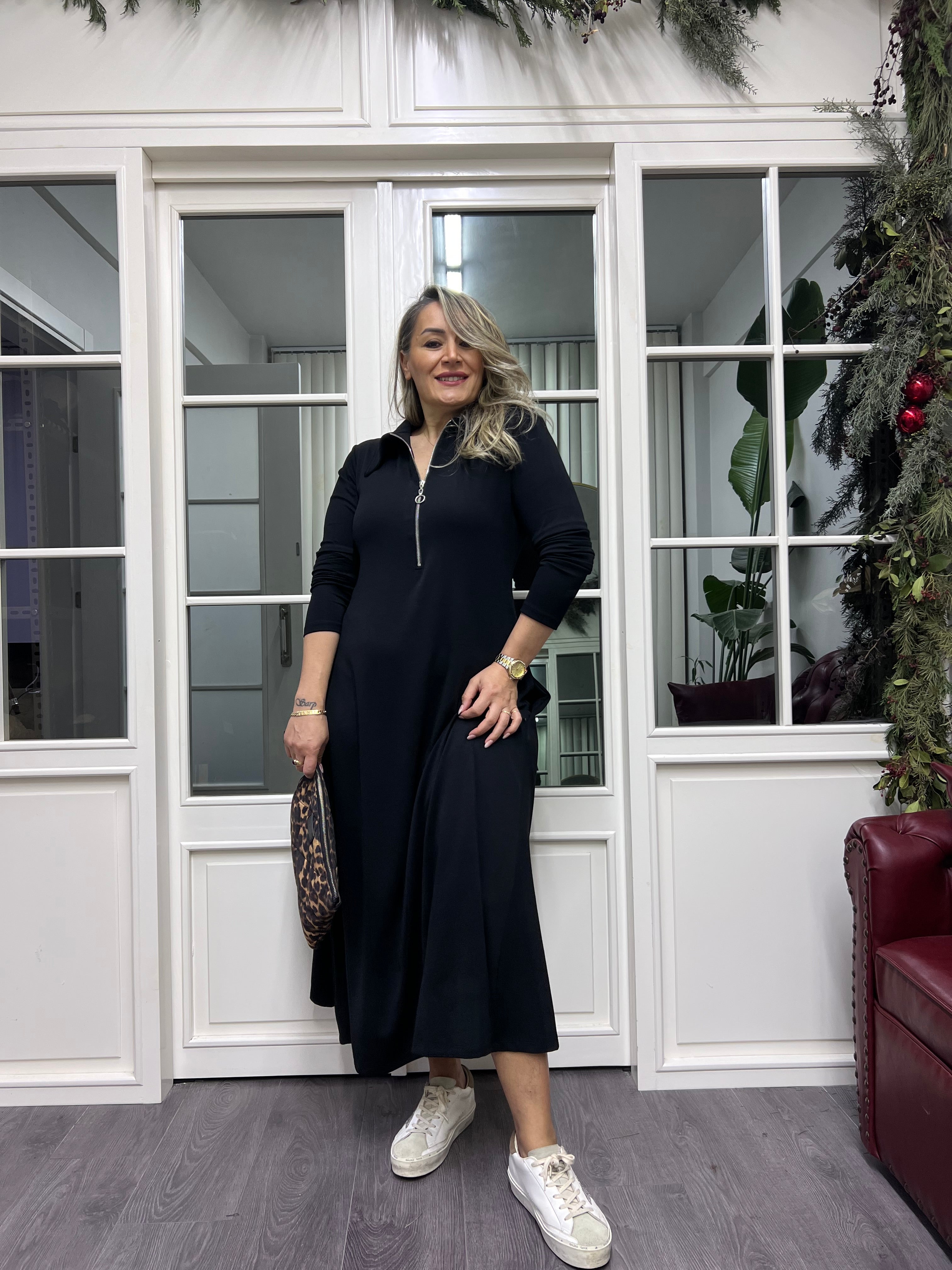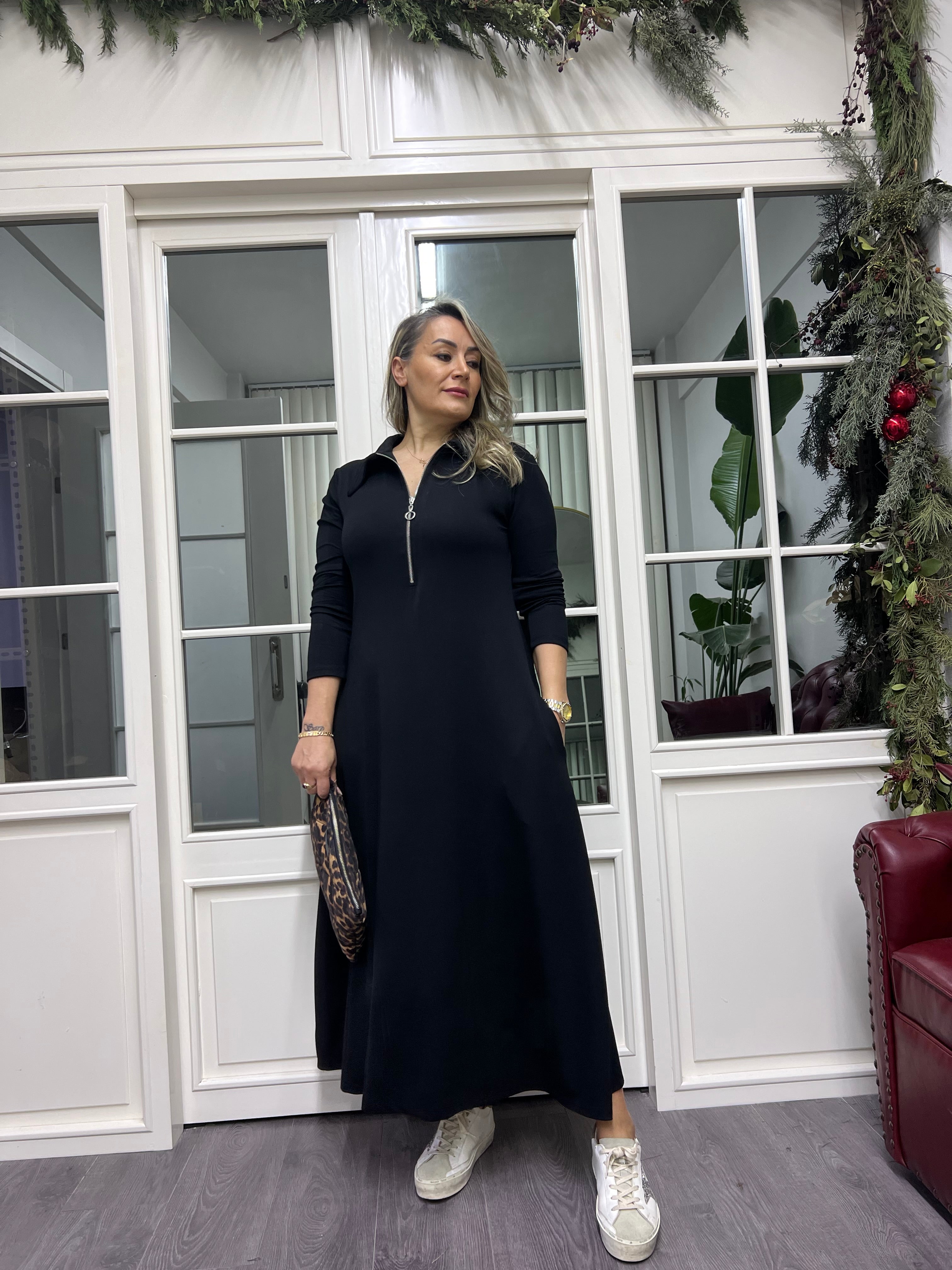 A02260 yakalı fermuarlı elbise