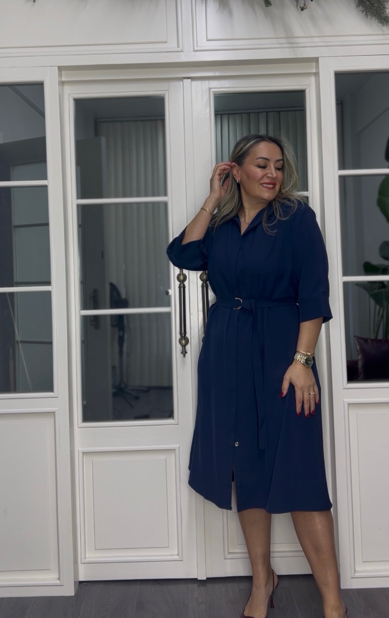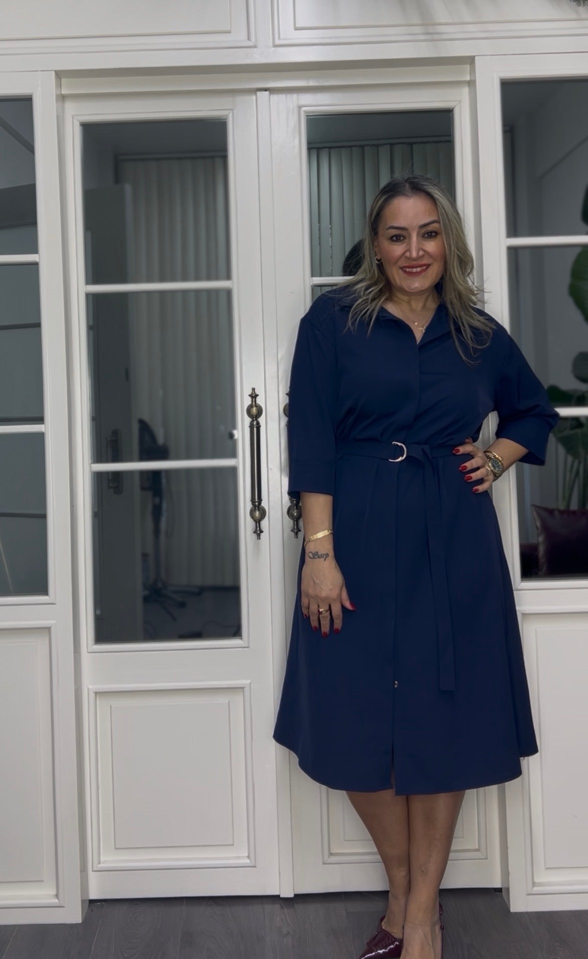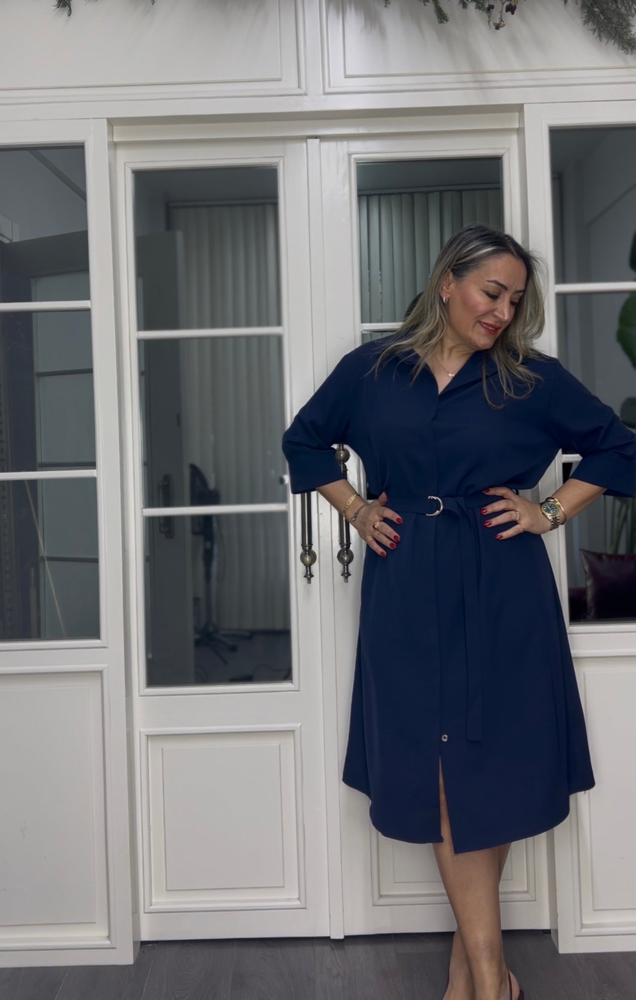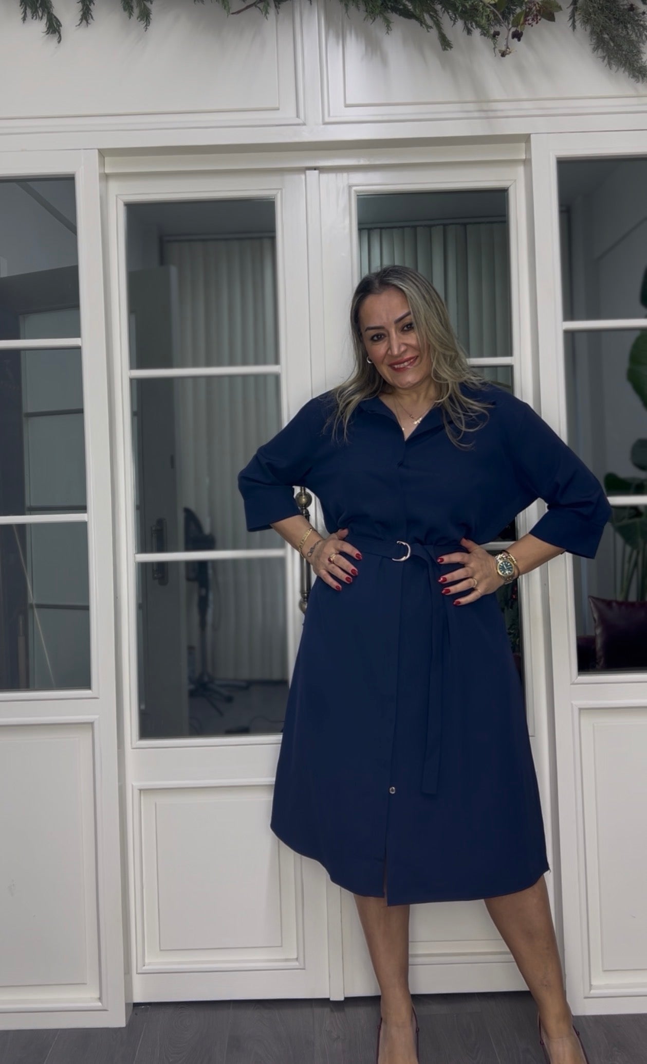 A02311 lacivert premium gömlek elbise